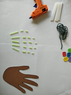 Fixez-les morceaux de pailles en plastique sur la main à l'aide d'un pistolet à colle.
